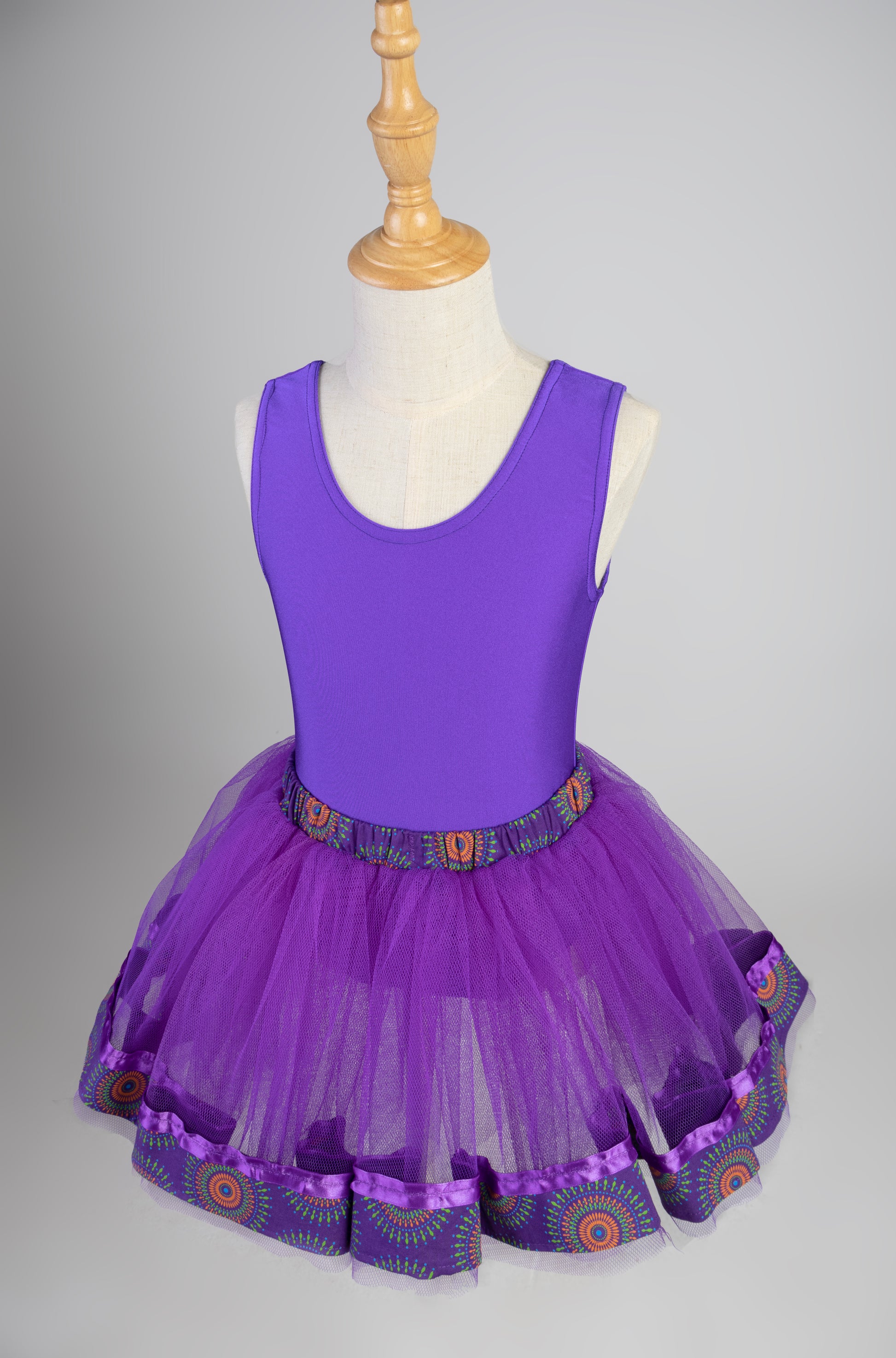 The Isibindi Tutu is part of the Dressed for Dance Heritage Tutu Collection and is named after the Zulu word for "Brave." This vibrant Purple tutu is made with three fully gathered tulle layers with a Shweshwe band and trim in two different patterns. Available for purchase as a single tutu or as a set with a matching leotard for ages from 2-3 years all the way to 8-9 years. Proudly South African and Made With Love for gorgeous girls around the country!