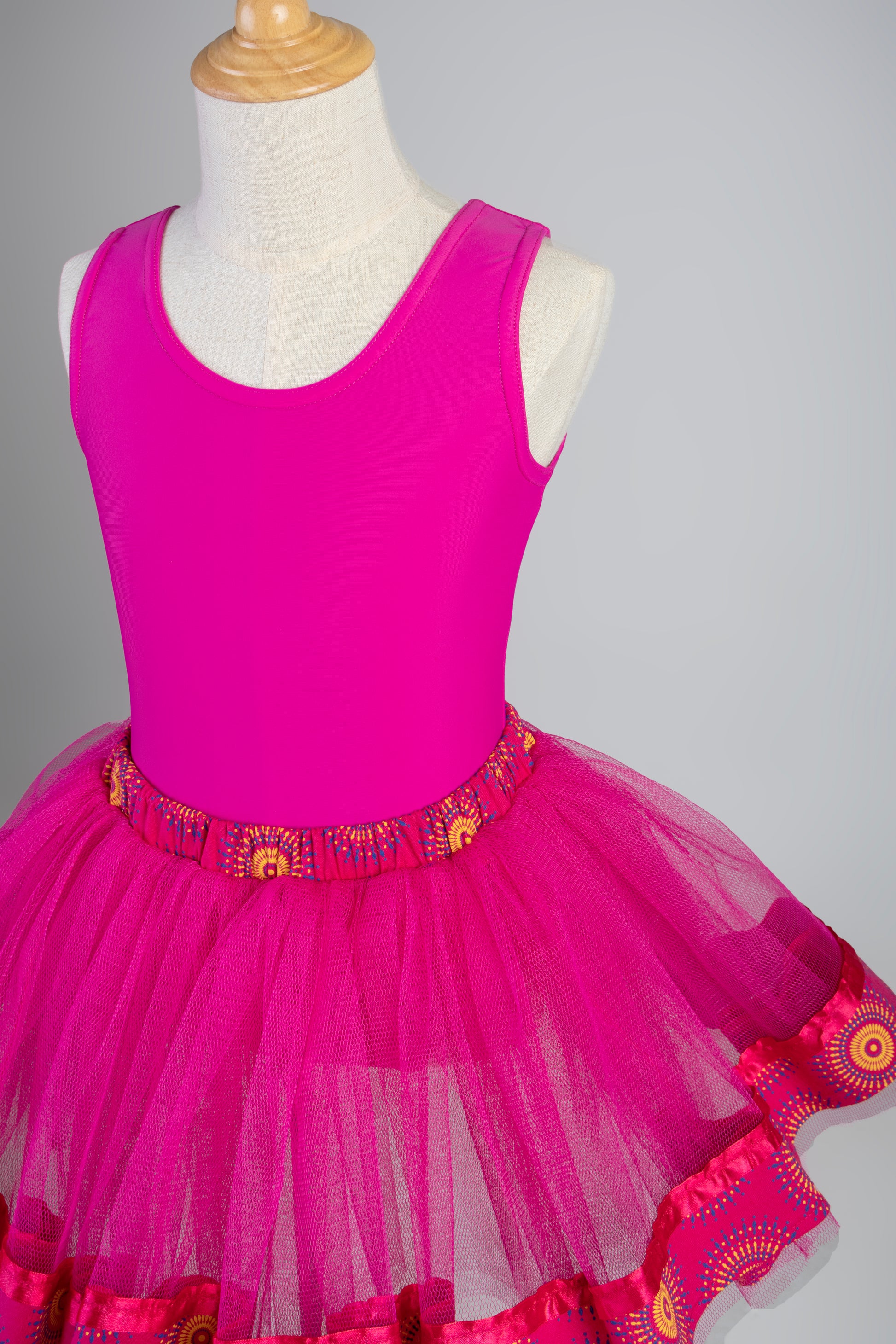 The uThando Tutu is part of the Dressed for Dance Heritage Tutu Collection and is named after the Zulu word for "Love." This vibrant Pink tutu is made with three fully gathered tulle layers with a Shweshwe band and trim in four different patterns. Available for purchase as a single tutu or as a set with a matching leotard for ages from 2-3 years all the way to 8-9 years. Proudly South African and Made With Love for gorgeous girls around the country!